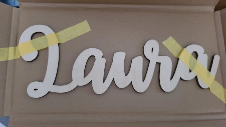 the wooden name is great, good quality and arrived in perfect condition. The only minor issue is that the first letter is very close to the second letter.