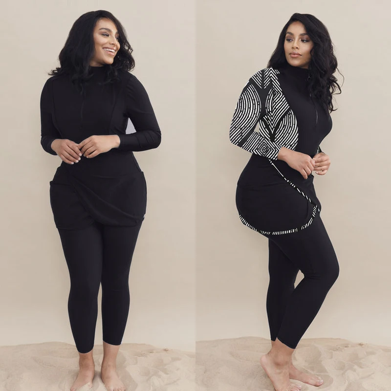 3PCS/Set Plus Big Size Burkinis Muslim Swimming Suit Swimwear Women Modest Patchwork Long Sleeve Sport Swimsuit Islamic