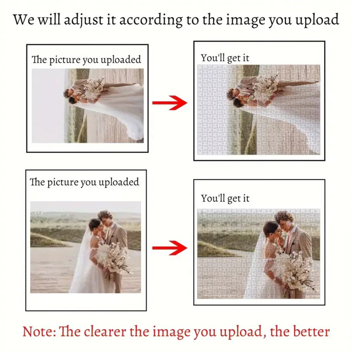 Create personalized photo puzzles for everyone—customize your own photo puzzles with your favorite family photos, vacation shots, or beloved pet pictures! Capture family memories—enjoy precious moments together, piece by piece. Each puzzle will cherish your favorite family moments A thoughtful and creative gift—surprise your loved ones with a unique present that’s both fun and easy to assemble. Cherish them by gifting a keepsake for Gender Reveal Day, Christmas, or just “because.” Photo puzzles are the perfect choice for timeless treasures Capture Memories—Surprise your loved ones with a way to relive precious moments. Once the puzzle is completed, glue it together and frame it as a one-of-a-kind wall art piece A joyful activity for everyone—this puzzle is both challenging and captivating, with more pieces to multiply the fun! Start a fun tradition that brings everyone together, or