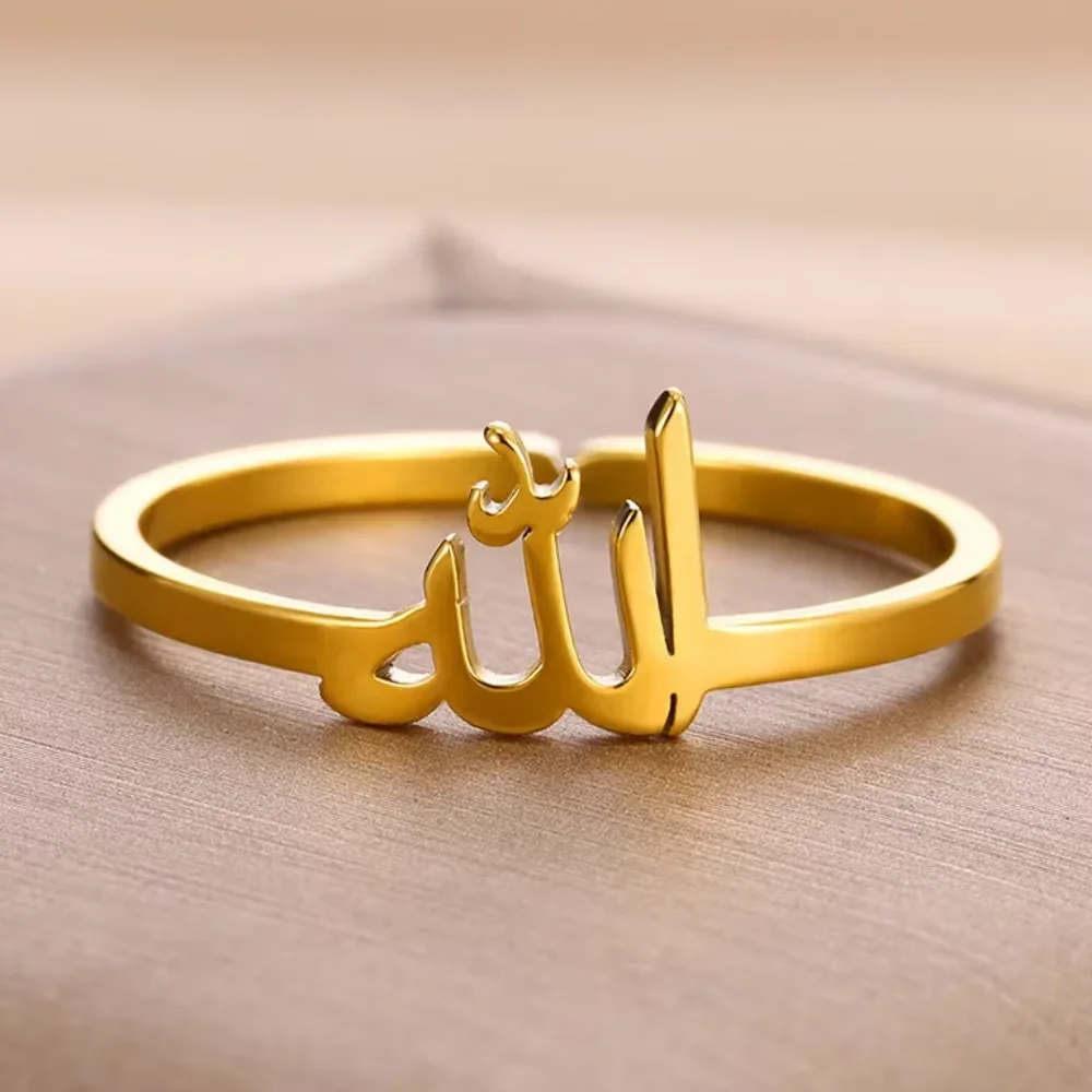 Material: Stainless SteelnOccasion: Versatile for various celebrations, including Parties, Weddings, Birthdays, Engagements, and AnniversariesnDesign: Geometric pattern with Allah symbolnGender: Unisex, suitable for Men, Women, Girls, Boys, and LoversnDurability: Resistant to 105℃ evaporation with BAUTOBVC materialnAdjustability: Easily adjustable to fit most ring sizesnnn|Islamic Ring For Women|nn**Elegant Symbolism for Every Occasion**nAdorn your finger with a piece of religious symbolism that resonates with your faith. The Arabic Islamic Muslim Allah Rings embody elegance and spiritual significance, perfect for those seeking a meaningful accessory. The geometric design encapsulates the essence of Islam, while the stainless steel material ensures durability and resistance to fading. Whether attending a wedding, engagement, or simply expressing your personal style, these rings are versatile enough to complement any outfit.nn**Designed for Everyone, Everywhere**nWith a unisex design, this ring is not just for men but for everyone who appreciates the beauty of Islamic art. Its adjustable feature means that it can fit a wide range of finger sizes, making it an inclusive gift for friends, family, or a personal treat. The Islamic ring’s design is minimalistic, making it a versatile piece that can be worn daily or for special occasions. The gold-colored finish adds a touch of sophistication, making it an ideal gift for any event, from birthdays to anniversaries.nn**A Gift of Faith and Style**nSearching for a thoughtful gift for a loved one? The Islamic ring is an ideal present that combines faith and fashion. It’s a meaningful way to express your beliefs while also showcasing a stylish accessory that can be cherished for years to come. Whether you’re looking for an Islamic ring for men or one that’s unisex, this piece caters to all. The dropshipping option makes it easy for you to gift this symbolic piece to those who mean the world to you.