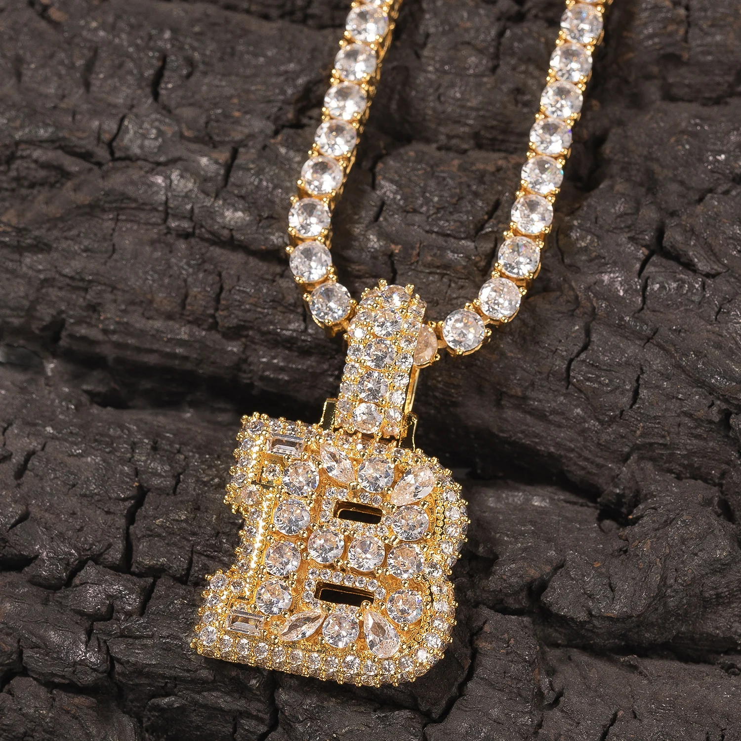 Custom Vertical Initial Letter Pendant Mixed Inlay Different Shape Multi Color CZ NamePlate Necklace Hiphop Jewelry
