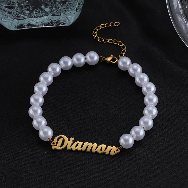 Customized Bracelet Created Pearl Bracelets Stainless Steel Wrist Chain Elegant For Women Jewelry Girl Christmas Gifts Charm