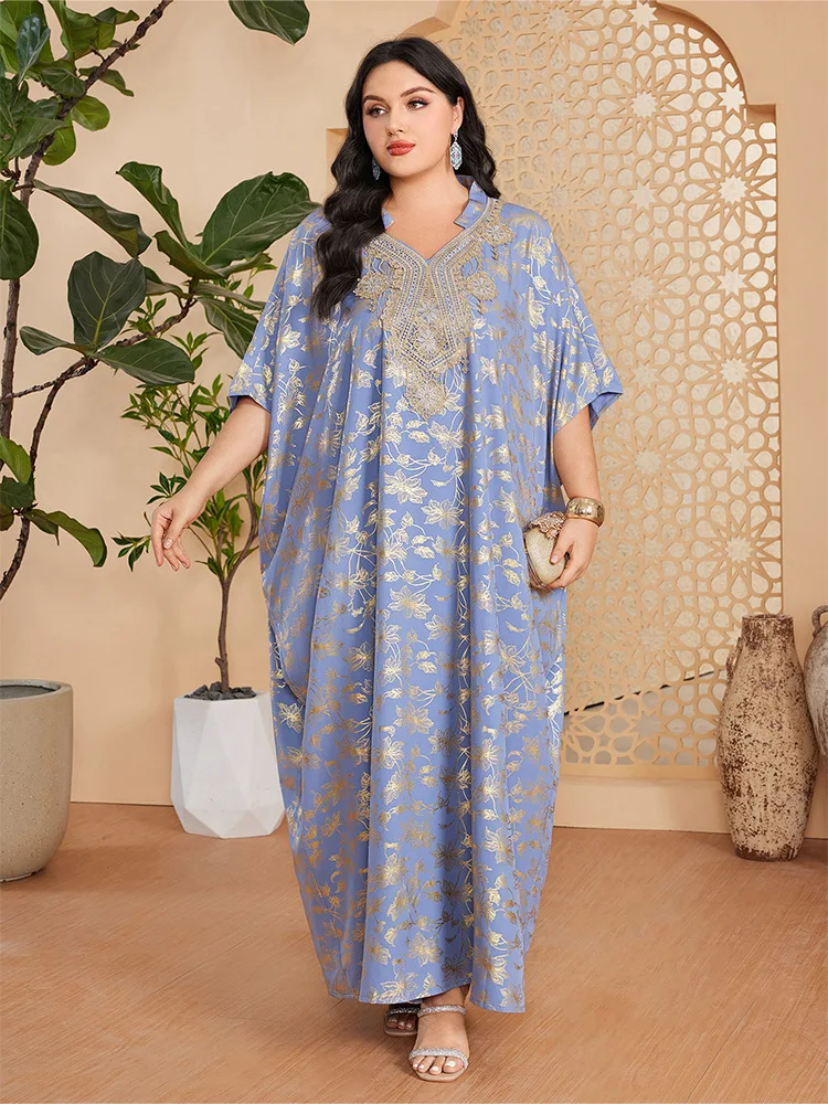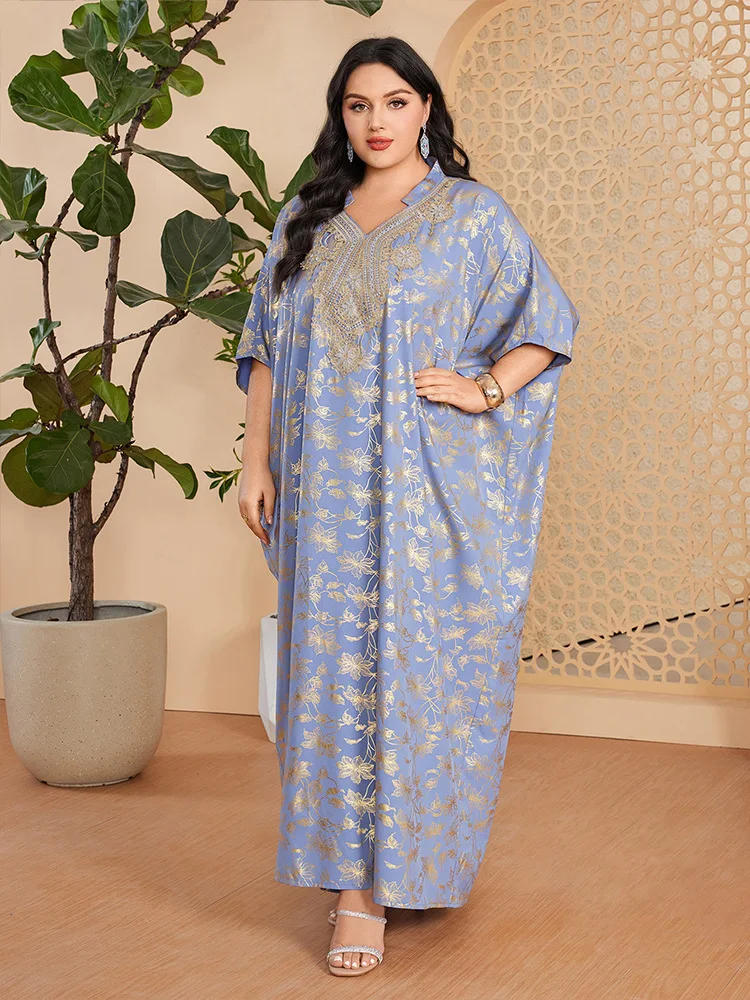 Dubai Embroidery Print Kaftan Women Muslim Maxi Dress Abaya