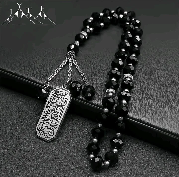 Islamic Quran Ayatul Kursi Sutra Car Pendant Women Men Stainless Steel Muslim 33 Prayer Beads Ramadan Blue Glass Chain Jewelry