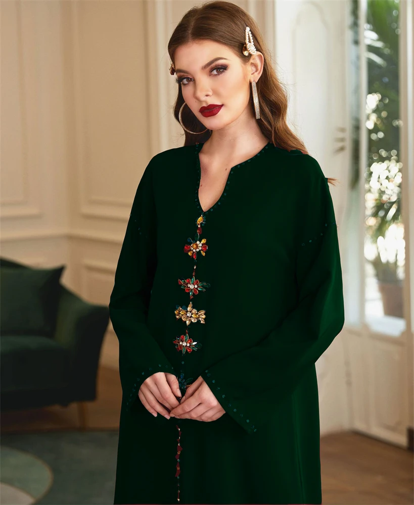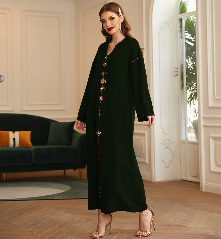 Ramadan Dark Green Muslim Abaya Dubai Turkey Islam Arabic Abayas For Women Kaftan Dress